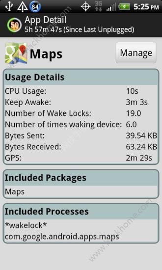 2、显示详细的电池使用内容。允许排序清单显示应用程序的使用 CPU 的使用率,感应器的使用,比如唤醒锁定,唤醒时间等等。可以自订时间观看时间内的统计资讯。