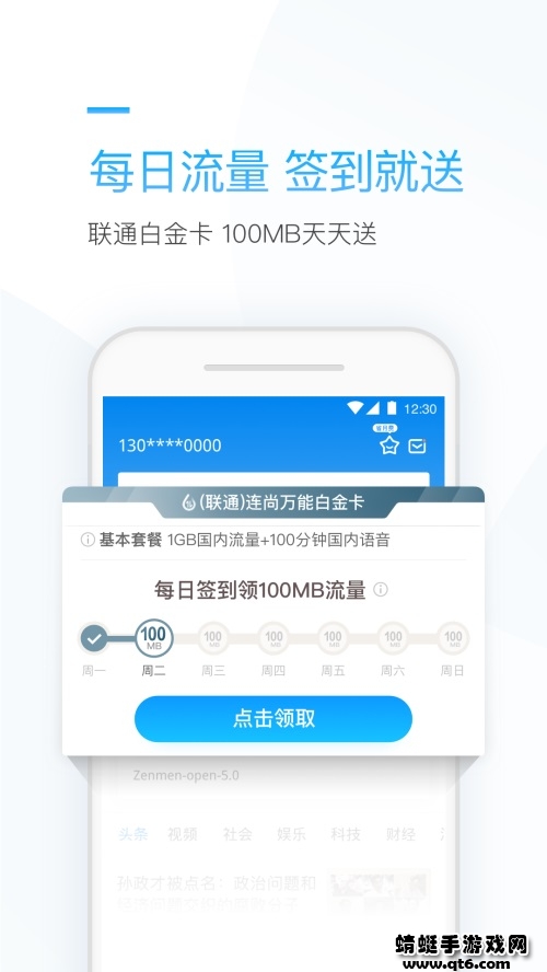 提供手机号入网激活、签到领流量,申领新卡、浏览头条资讯等功能。