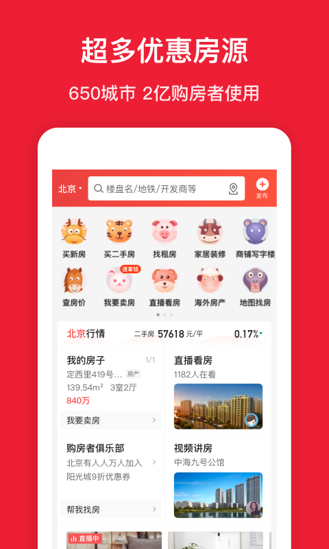 新房:实时更新新建筑;二手房:精准筛选房产;查房价:随时随地查房价。