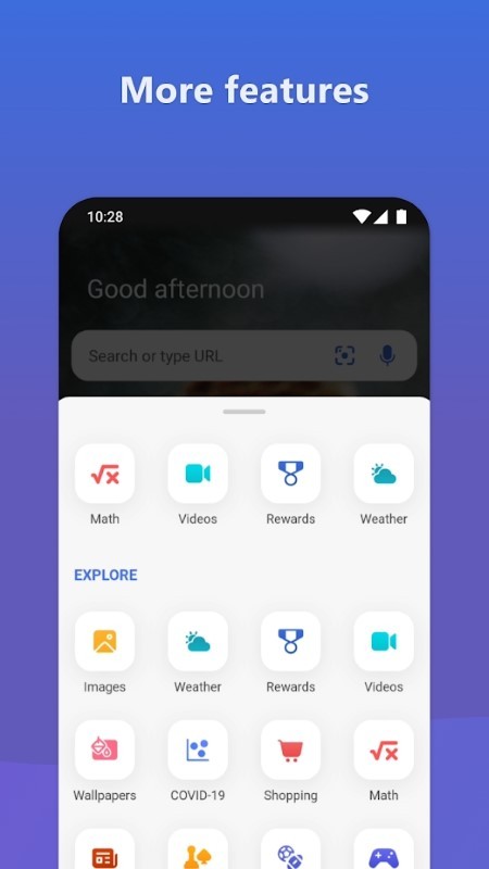 帮助您快速找到值得信赖的搜索结果,追踪您关心的热点趋势,并让您掌控自己的隐私。只需用语音、拍照或网络图片即可搜索,无需打字。只需在必应上搜索即可赚取 Microsoft Rewards 积分,并可将其兑换为热门商店的免费礼品卡。用我们从世界各地拍摄的精美壁纸,个性化设置您的主页。通过我们的全新设计,只需轻点一下,即可获取 Microsoft 的各种功能和体验。