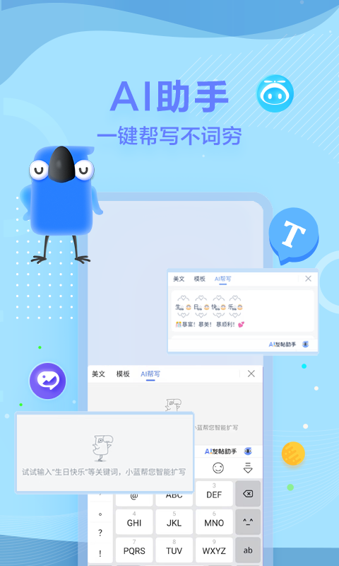 讯飞语音输入法,1分钟400字,语音输入带你飞!讯飞语音输入法,AI语音精准识别,手写拼音流畅输入,文字扫描输入,面对面语音翻译,更有海量精美皮肤、卖萌表情、可爱颜文字,是你必备的手机输入法。