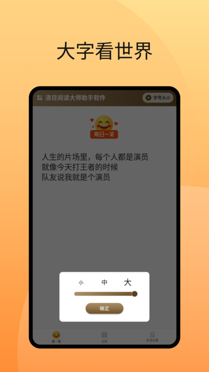 清目阅读大师助手是一个大字体的设计软件,放大字体,畅享阅读过程,缓解用户阅读时的眼部疲劳,满足中老年人休闲娱乐的需求,让世界变清晰!