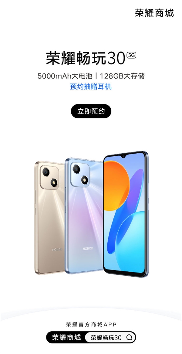 5G千元机新成员!荣耀畅玩30开启预订:对称镜头太抢眼