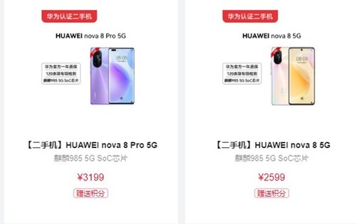 据悉,华为官方商城上架了一批官翻二手手机,其中包括华为nova 8、nova 8 Pro,价格分别为2599元和3199元。